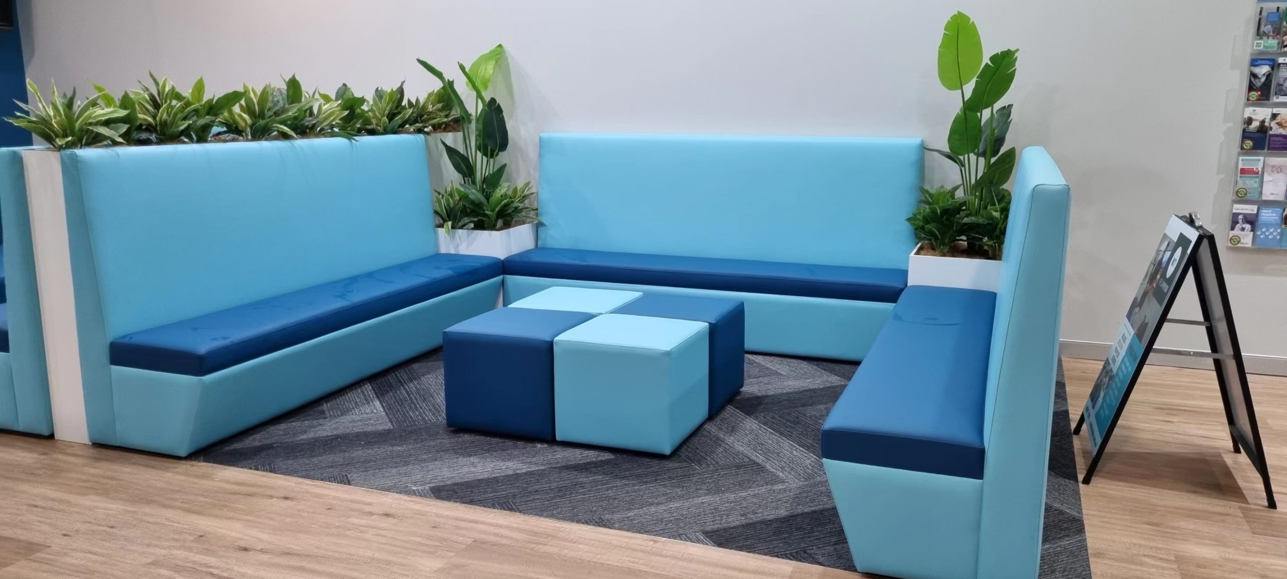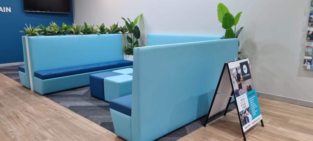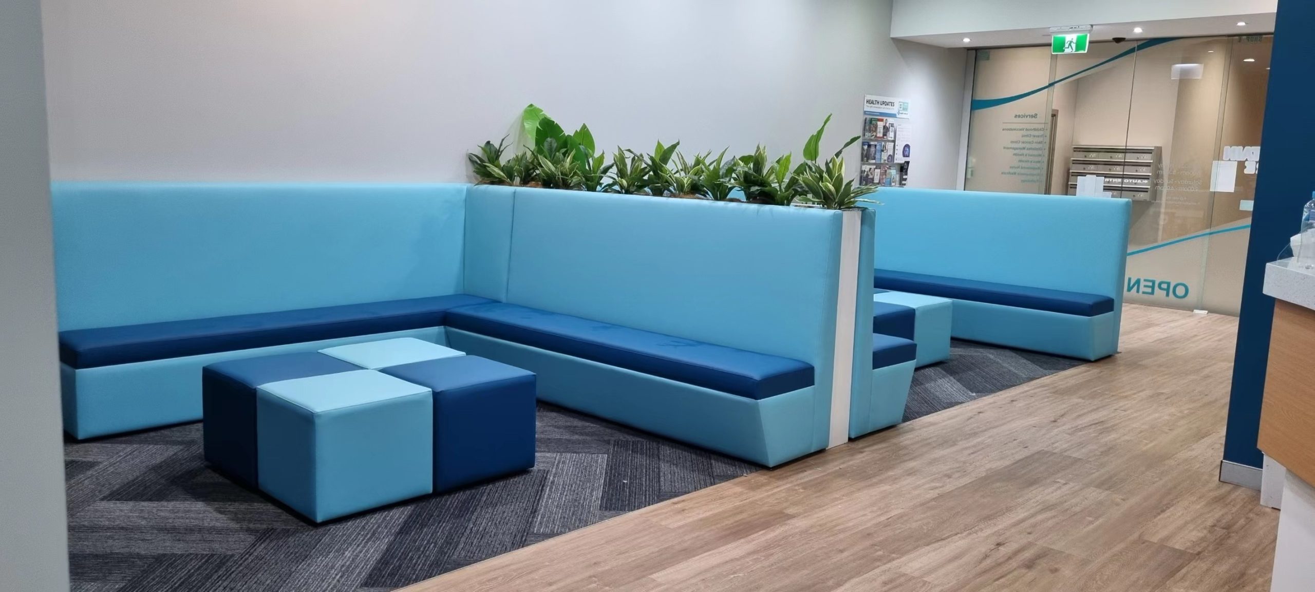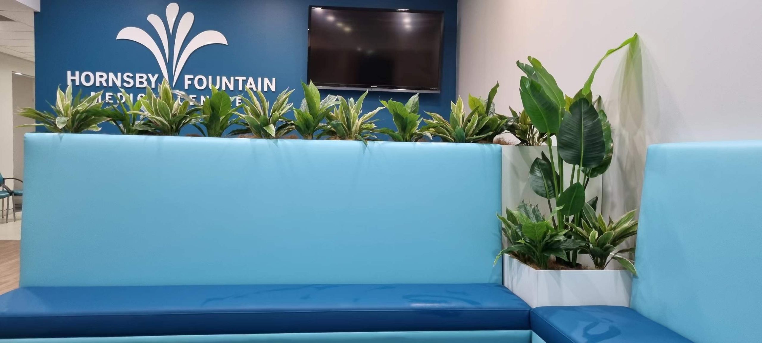 Clinic Reception Banquette Seating and Planter box Custom Made at Hornsby Clinic, Sydney
