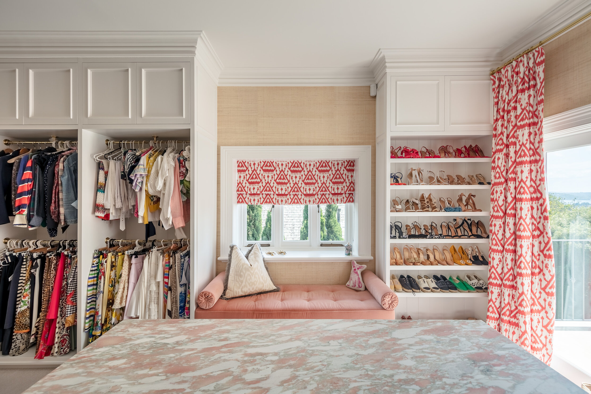 Custom Made Banquette Seating in Walk-in Wardrobe
