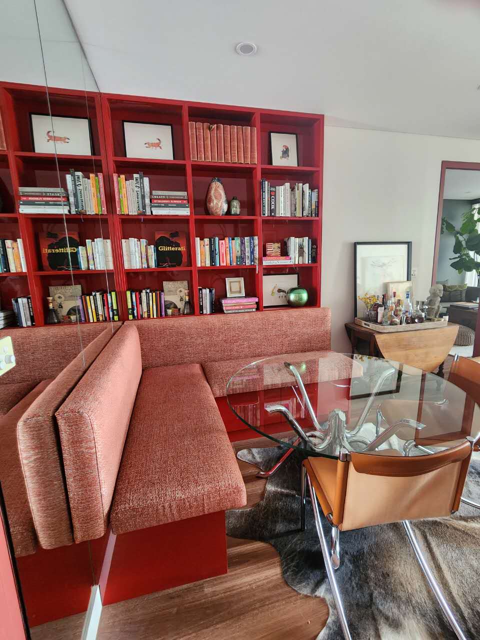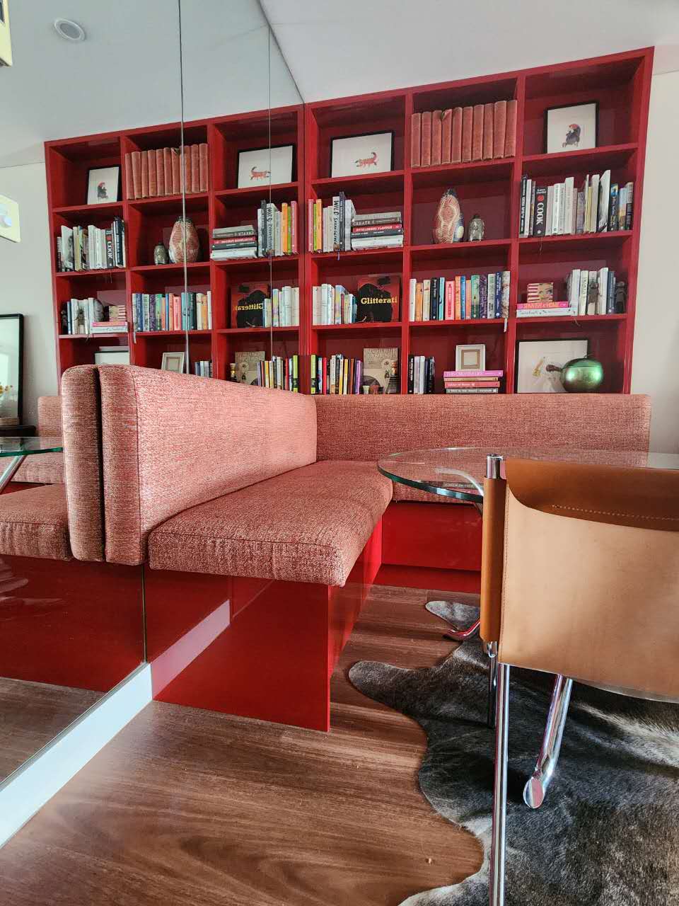 Custom Made L shape Booth Seating attached cabinet